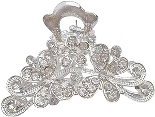 Fodattm Haarspange mit Retro-Blumen, für Damen und Mädchen, Vintage-Stil, Legierung, Strass, Haarklammer (Silber)