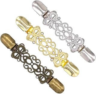 Fenical Pullover Clips Strass Blumen Spitze Design Cardigan Kragen Clip für Frauen Mädchen 3 Stück (Golden, Silber und Bronze)