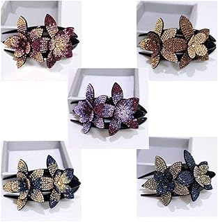 Fannyfuny 2020 New Frisurenhilfe Haarreif, Strass Double Flower Haarspange, Mode Damen Strass Blume Metall Haarnadel, Elegant Lady Schwalbenschwanz Clip Schmuck mit schönen Strass Flexible Langlebige