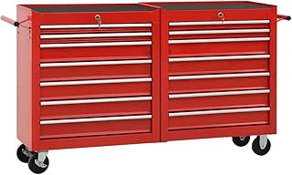 vidaXL Werkzeugwagen mit 14 Schubladen 4 Lenkrollen Kratzfeste Oberfläche Werkstattwagen Werkzeug Rollwagen Werkzeugkiste Stahl Rot