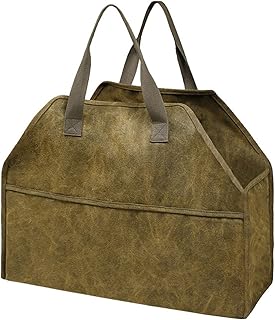 Homeya Kaminholz-Träger, gewachstes Segeltuch, Kaminholztasche mit Ledergriff, robuster Kamin-Holzhalter, Ofenzubehör, Aufbewahrungstasche für Grube im Freien, Camping, im Innenbereich